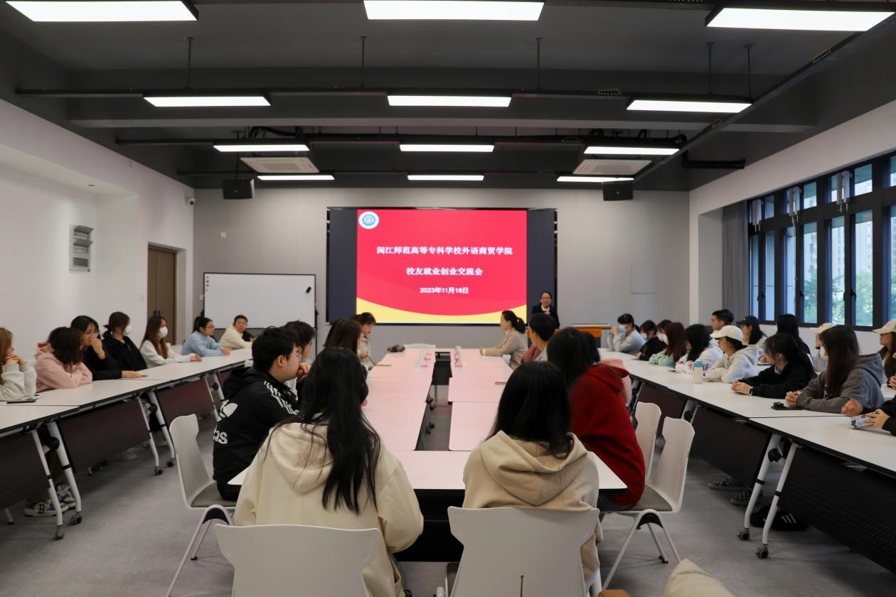 在xg111net代理商120周年校庆之际,为激发大学生创新创业激情,培养高素质技术技能人才,外语商贸学院于11月18日在旗山校区实训楼301教室举办校友就业创业交流会。本次会议特邀泉州九丰网络科技有限公司总经理苏燕芳,厦门链天好网络科技有限公司招商经理、厦门涂湖厝电子商务有限公司股东胡纯真和福州市花园小学英语教研组长叶磊三位校友回到母校为在校生分享就业创业经验。学院党总支副书记卢燕红、副院长陈海燕、团委书记占婷以及在校生代表参加本次活动。本次活动由卢燕红老师主持、匠心筑梦辅导员工作室承办。