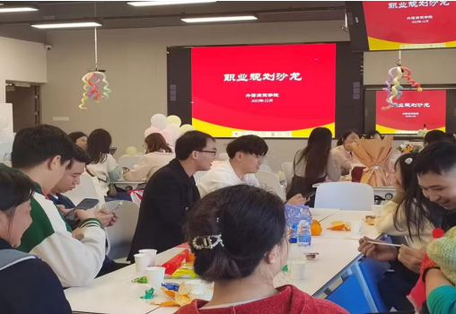 为引导同学们做好未来的发展规划,解决职业规划方面的疑惑,12月10日,外语商贸学院在实训楼107教室开展职业规划沙龙,以小组为单位,外语商贸学院校友代表为在校生分享经验。